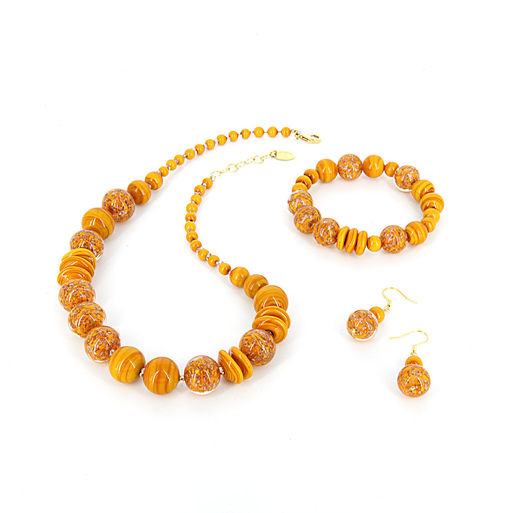 Dĺžka náhrdelníka je variabilná, 48 - 52 cm. Súčasťou setu sú aj visiace náušnice a náramok. Všetky použité kovové časti sú antialergické