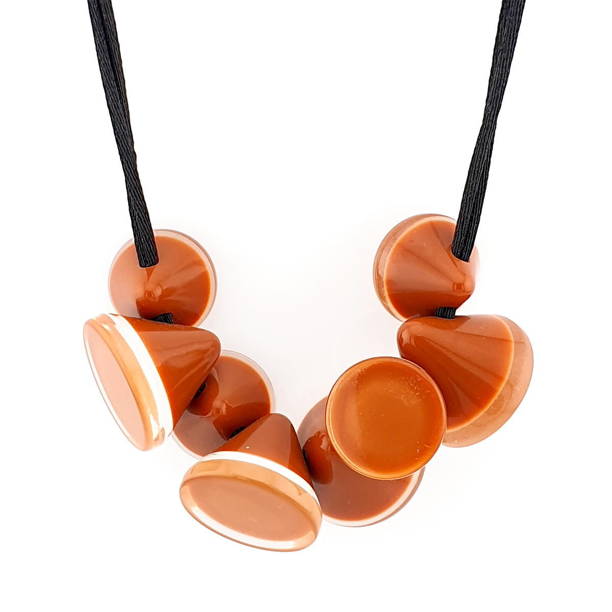 Náhrdelník značky ZSISKA je ručne vyrobený zo živice - polyresin. Náhrdelník je zavesený na saténovej šnúrke a je ideálny pre alergikov, lebo neobsahuje kovové časti.