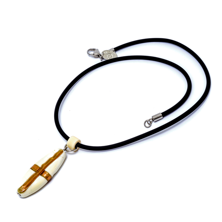 Náhrdelník je z hrubšej kože na ktorej je zavesený výrazný sklenený prívesok. Náramok nieje súčasťou setu, ale dá sa osobitne zakúpiť.