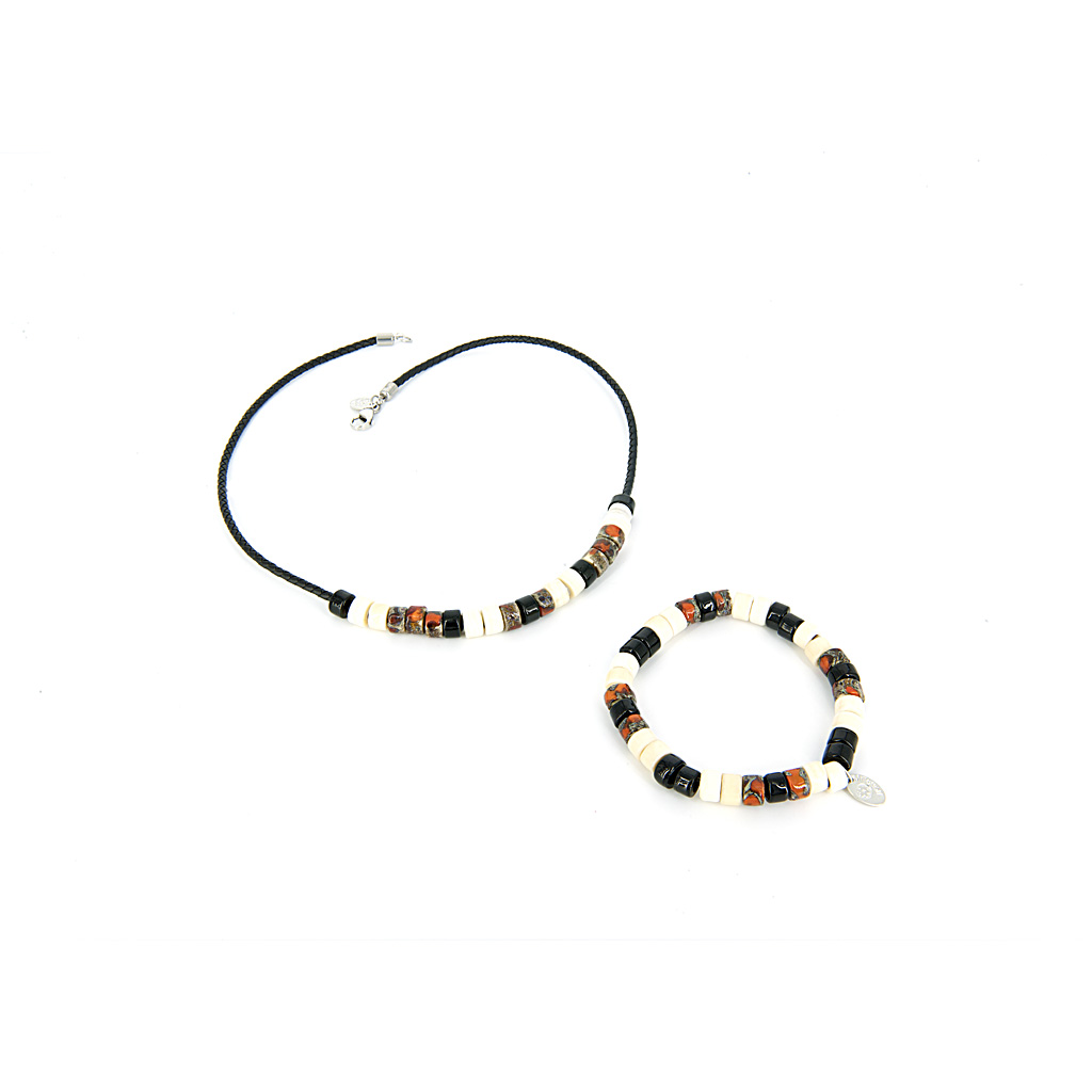 Náramok je na gumičke a skladá sa z drobných korálikov. Fotografia má ilustračný charakter a náhrdelník nieje súčasťou, ale dá sa osobitne zakúpiť.