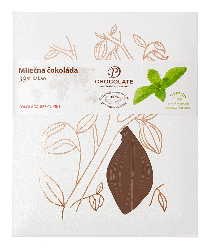 Krátky popis: Tabuľková, mliečna čokoláda bez cukru so steviou.