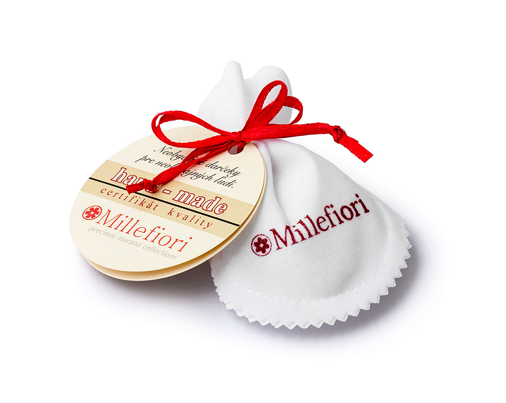 Jemný náhrdelník z muránskeho skla je umiestnený na textilnej šnúrke.