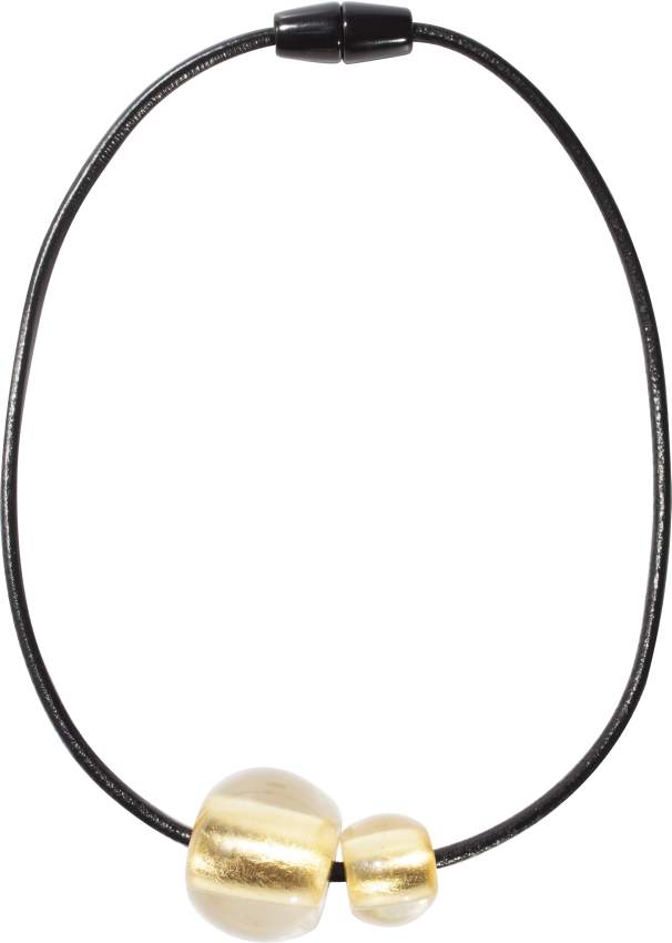 Náhrdelník značky ZSISKA je ručne vyrobený zo živice - polyresin. Náhrdelník je na šnúrke z kaučuku. V jednotlivých komponentoch je zakomponovaná fólia z 24 karátového zlata.