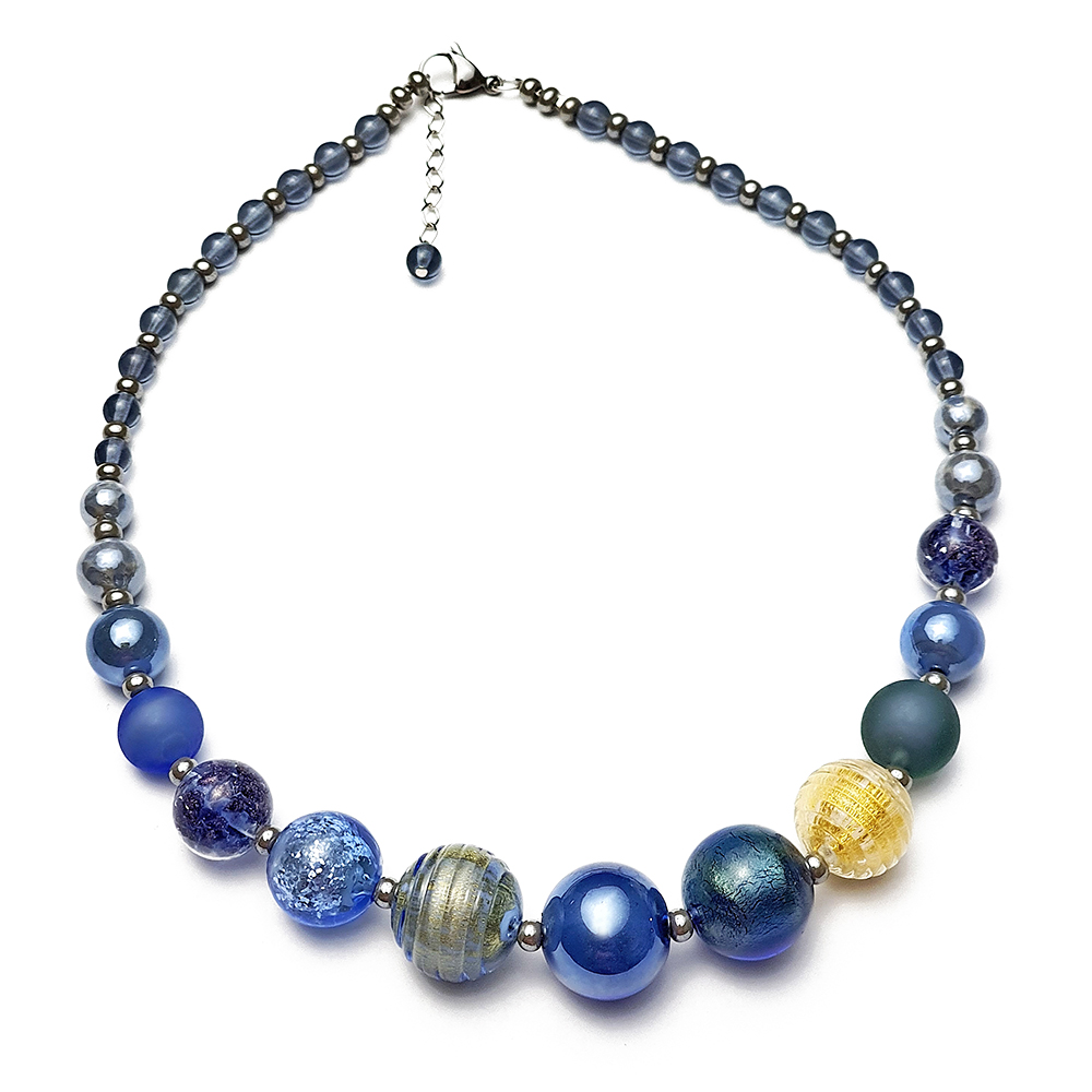 Krátky popis: Exkluzívny náhrdelník z muránskeho skla, Antica Murrina v kombinácii s nealergickým kovom striebornej farby. Hand-made.