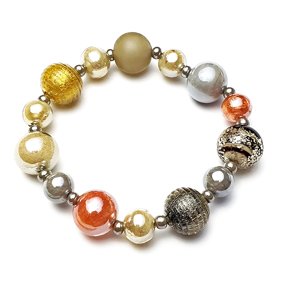 Náramok pozostáva z viacerých sklenených komponentov, spracovaných rôznymi spôsobmi, obohatených o trblietavé minerály a aj koráliky s lístkami z čistého striebra alebo 24k zlata, zapracovanými za horúca.