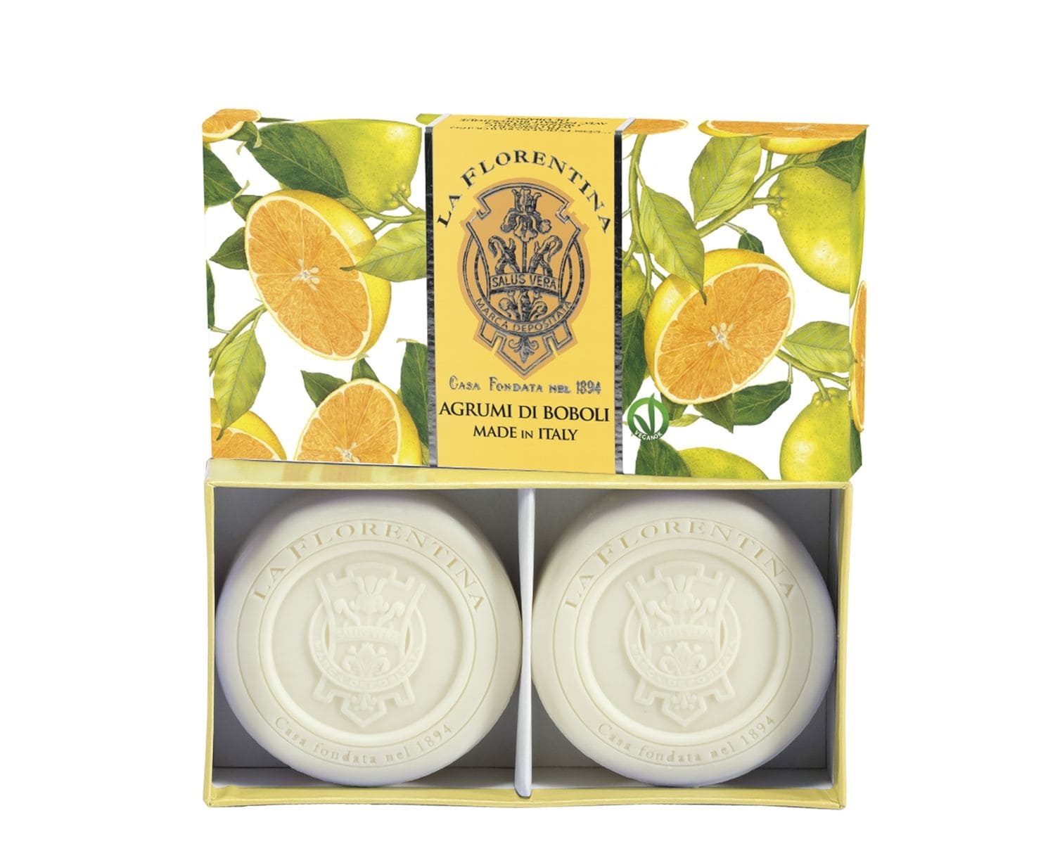 Nádherne voňajúce prírodné mydlo s vôňou citrusových plodov. Ručne robené, talianske, prírodné mydielka Fiorentino sú balené v kvalitnej darčekovej krabičke.